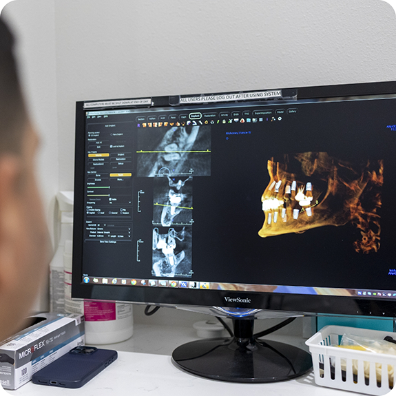All-on-4 treatment uses a special technique when placing the dental implants designed to minimize the need for a bone graft in patients who have experienced bone erosion. It involves four dental implants for each arch to restore an entire row of teeth. The front two are placed at a 90-degree angle, while the back two placed in the molar-area are placed at a 45-degree angle, which will allow them to stay rooted in the stronger front area of the bone. This will provide strength and stability for your denture in the same way as a traditional implant denture.