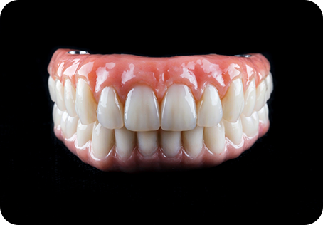 Full dentures are crafted to sit atop the gumline and jawbone, staying firmly in place using natural suction. The base is specially crafted to fit securely within the mouth, holding the replacement teeth in place to make it easier to eat and speak.
